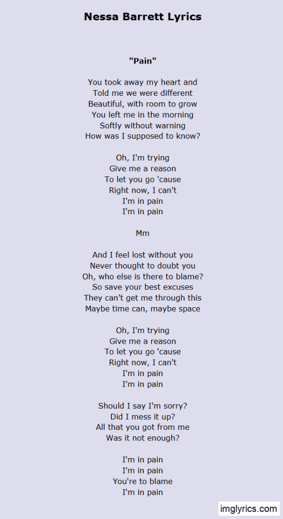 Pain for me means judgement from others , arguing, uncertainty .Being unable to concentrate, sleeping when I want to be awake and being in pain when I want to sleep. Most of all pain means always feeling guilty and saying sorry for not being the person I was