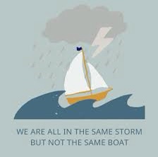 We aren’t all in the same boat. We are in the same storm. Some have yachts, some have canoes, and some are drowning. All we can do is just be kind and rescue those that we can.