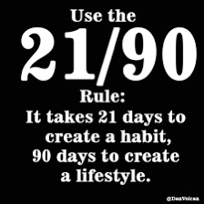 What is the 21/90 rule? Basically, it takes 21 days to create a habit and 90 days to make it part of your lifestyle. After you complete the 90 days, the habit will be as much a part of your daily lifestyle as brushing your teeth.