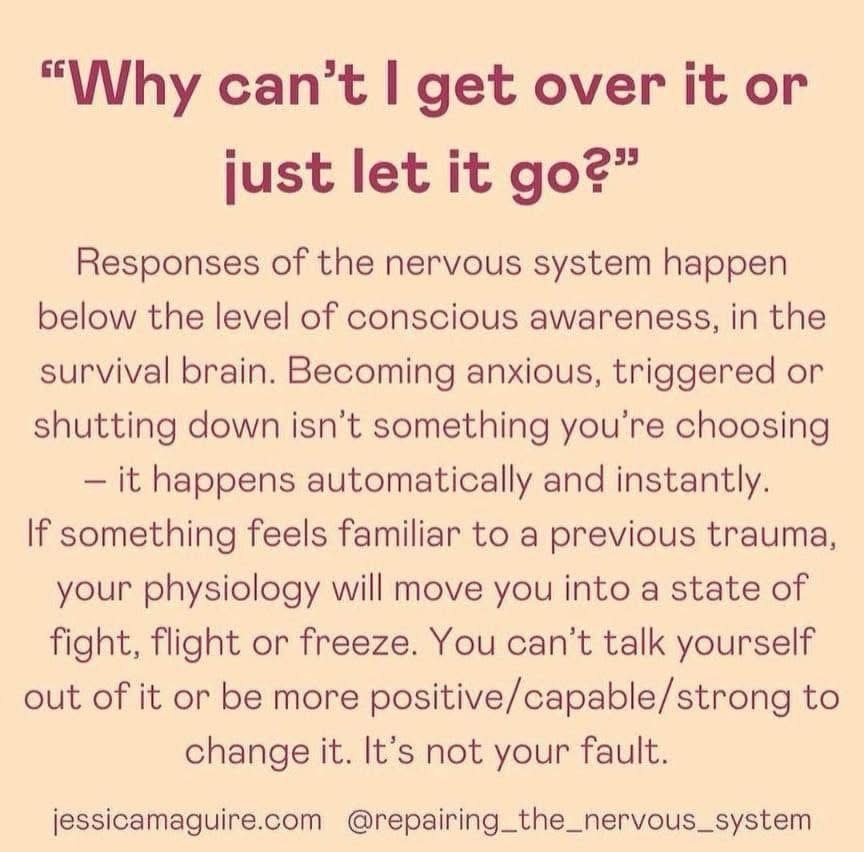 But letting go is hard. This is why I must adopt this as a daily practice. It’s not easy for some of us to let go. Especially when we’re triggered into one of our survival responses. It’s not our fault, past trauma can an activate fight, flight or freeze response. It’s not something we choose its something our subconscious chooses for us. We can’t just talk ourselves out of it. It takes inner work and self reflection. It’s not automatic we have to forge new safer pathways in our brain and it may take several attempts to get it to stick. I’m back at ground zero and have been for a year or more.